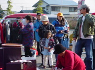 | 楽しみにして下さっているお客様の中には、出店者の方よりも早く来場し、 駐車場にて待っていらっしゃる姿も見られました。 10時の開催に合わせて、たくさんのお客様が足を運んで下さり、 あっという間にあちらこちらで人垣が出来ていました。 「これっていくら位?」や 「これとこれ、両方でいくらにしてくれる?」など 出店者の方とのやりとりが聞こえてきて、とても賑やかでしたよ。 |