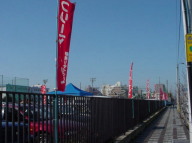 | こちらは、 会場周辺の様子です。 国道414号線(通称:学園通り)沿いや、会場北側に ←横断幕やのぼり旗→ があります。 目印にして下さいね。 |