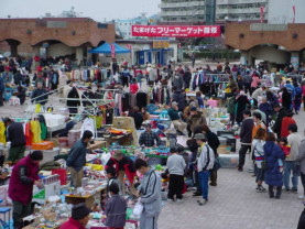清水日の出マリンパーク会場でのフリーマーケットの様子や