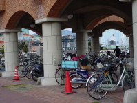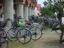 | こちらは会場の自転車の 様子です。 開催の10時に合わせて、 会場周辺には沢山の 自転車でいっぱい!! 皆さん、帰りは自転車に 荷物がいっぱいでした。 |