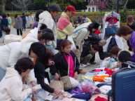 | 会場に来るのが遅くなってしまった出店者の方がいました。 出店者の方が商品を並べ終わるのが先か? お客様が掘り出し物を見つけるのが先か? 「この中の物も見ていい?」 「あっ、いいですよー。そちらのお客様はちょっと待っていて下さいね。」 「これとこれ、欲しいんだけど・・・」 「じゃあ、まとめて○○で!袋はありますか?」 「あるから、これに入れちゃうわ!!」 とても忙しそうでしたが、お客様も 出店者の方も 楽しそうでしたよ!!(↓) |