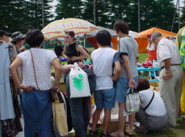 | 回数を重ねるごとに来場して下さるお客様が増えてきました。 また、今回は小さな子供さんと一緒の親子連れのお客様が 多かった様に思いました。 買い物をした袋を2つも3つも手に持ったお客様も多く、 掘り出し物を上手に見つけている様でした。 お客様とのやりとりの声もあちらこちらで聞こえてきて とても楽しそうでした。 欲しい商品を手に持って、値段を聞くのを順番で待っている・・・ そんなブースもありましたよ。 |
