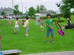| こちらは、公園の様子です。 公園内の芝生の所では、たくさんの 子供たちが楽しそうに遊んでいました。 お母さんはフリマでお買い物・・・ 子供たちは芝生でのびのび・・・ とても気持ちよく、楽しそうでしたよ。 |