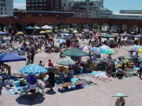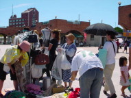 | 今回は日用雑貨が比較的多かった様に思いました。 特に陶器の食器などが安く出ていたり、衣類や靴が安かったり・・・ 午後になってから、値段を安くする出店者の方もおられました。 そんな中、買い物をした袋を2つも3つも下げて帰るお客様が とても多かったのが印象的でしたよ。 ![]() |