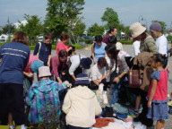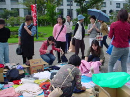 | 朝早くからお客様も来場して下さり、開催時間の10時には 会場内、たくさんのお客様で賑わっていました。 衣類や雑貨が安いブースなどは、お客様に囲まれて 出店者の方が見えなくなってしまうほどでした。 |