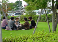 | こちらは 公園の様子です。 広くて緑の多い公園。 のんびりお友達と お弁当を食べたり、 親子でボールや三輪車で 遊んでいる姿が よく見られましたよ。 |