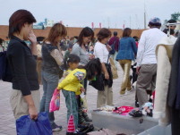 | 出店者の方も、家族連れの方やご夫婦、お友達同士と バラエティーに富んでいる様でした。 若い女の子達が出店していたブースでは、お買い上げが決まった お客様にはみんなで「ありがとうございまーす!」と拍手をして、 お買い上げ商品を手渡していました。とても楽しそうでしたよ。 また、後半の2日間は特に元気のいい声が聞こえてきました。 まるで空の雲を吹き飛ばすかのようでした。 (↓は19日・20日の様子です) |