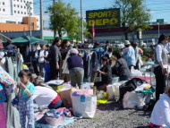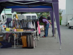 | 天気は良かったのですが、風が強く、時折突風が吹き、 出店者の方も、とても苦労をしていたようです。 ハンガーラックが倒れてしまったり、陳列していた物が 風で崩れてしまったり、飛んでしまったり・・・。 テントやパラソルもお昼頃には外す出店者の方も多かったですよ。 ![]() |
