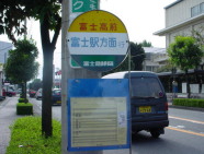 | こちらは会場前の バス停留所です→ 富士高校前で下車し 徒歩1分弱です。 すぐ前が会場です。 |
