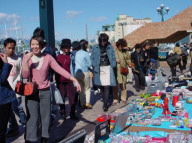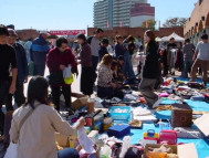 清水日の出マリンパーク会場でのフリーマーケットの様子や