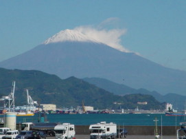 | こちらは、マリンパークから見える 富士山です。 風はありましたが、いい天気だったので 雪化粧した富士山が とても綺麗に見えました。 青い海と富士山・・・とても素敵な景色を 眺めながらフリマに参加しませんか? |