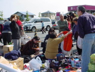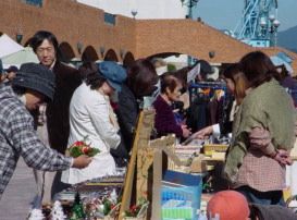 | 1日のみという事もあり、出店者の数もかなり多く、 約180ブースと会場いっぱいの出店となりました。 衣類などが並ぶ会場、11月ともなると、 ジャンパーやコートなどの出店が多くなってきました。 また今回あたりからは、手袋やマフラーなども見受けられるようになり、 お買い上げになったお客様が、その場で身に着ける為に 「袋はいらないわ」と話しているのが聞こえてきましたよ。 |