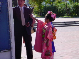 | こちらは、会場内で見つけてパチリッ。 七五三の時期ですね。 お着物を着て会場を訪れて下さった お客様に思わずカメラを 向けてしまいました。 会場を家族でひと回りして下さいましたよ。 |
