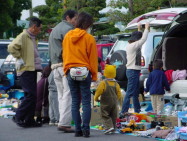 | 会場には、衣類や雑貨が並びました。 また、ビーズアクセサリーなどの 手作り品や、おもちゃも並び、 多彩な出店物で賑わいました。 お客様とのやりとりの声も聞こえてきて 「安くしてくれるー?」 「まとめて買ってくれるなら、いいよ!」 などなど、とても楽しそうでしたよ。 |