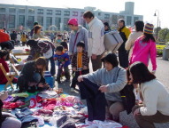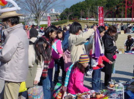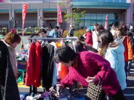 | 会場にはたくさんの出店となり、衣類や日用雑貨、贈答品や本などが それぞれ工夫して並んでいました。 クリスマスが近いので、手作りのクリスマスツリーや、 パーティー用の手作りアクセサリーなども並んでいました。 また、マフラーや帽子などの防寒用品もあちらこちらに 並んでいたのが見受けられました。 ![]() |